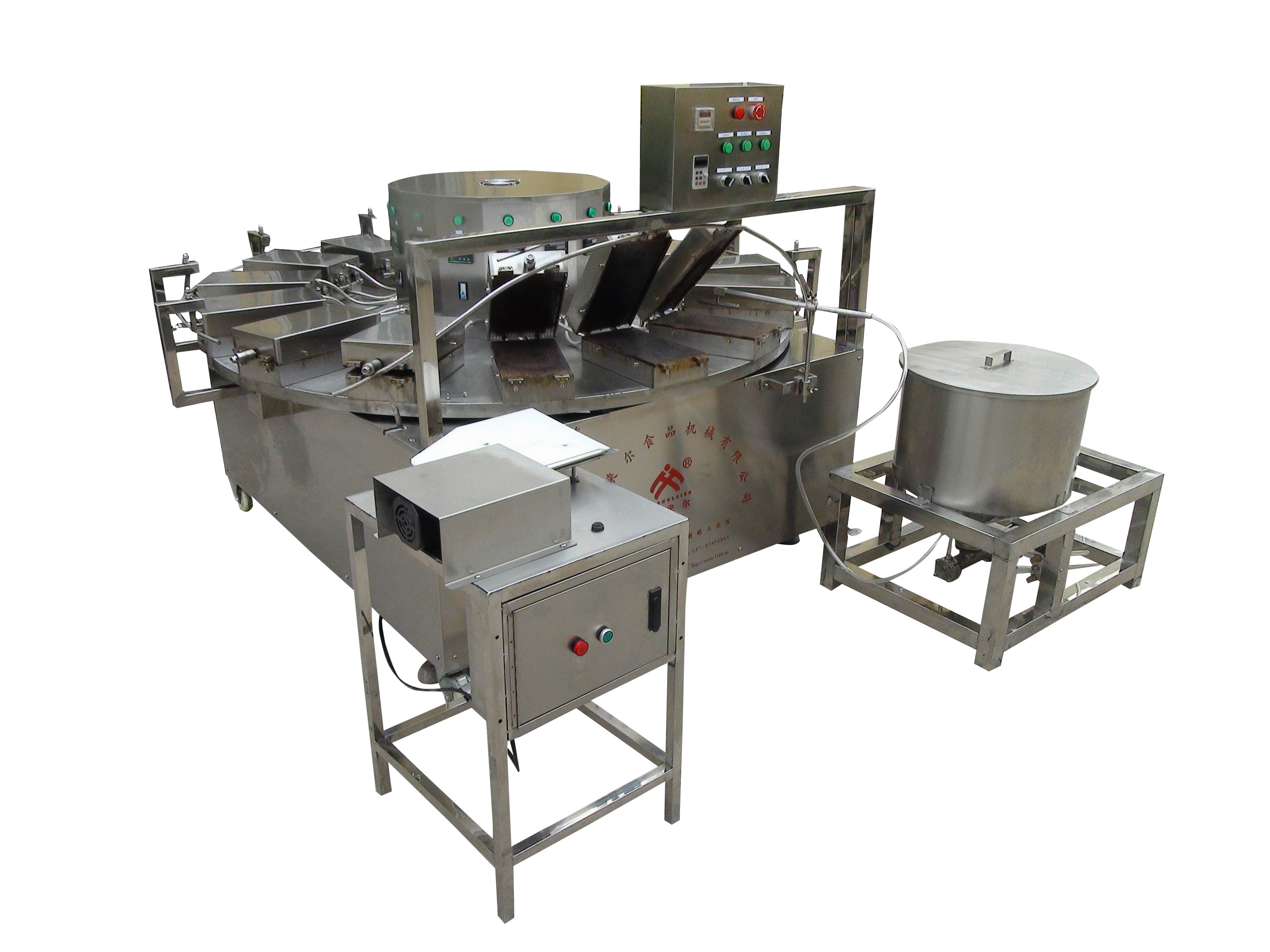 ★自動注漿,蛋卷成熟后機器自動打開,配有自動感應(yīng)卷裝制;一人操作,方便實用。
